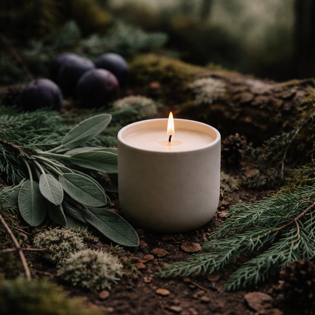 A refined blend where soft fruit meets clean, aromatic woods. Gentle notes of damson plum bring a subtle sweetness, balanced by earthy sage and fresh pine. Cedarwood forms a smooth, grounding base, giving the fragrance a calm, composed finish.