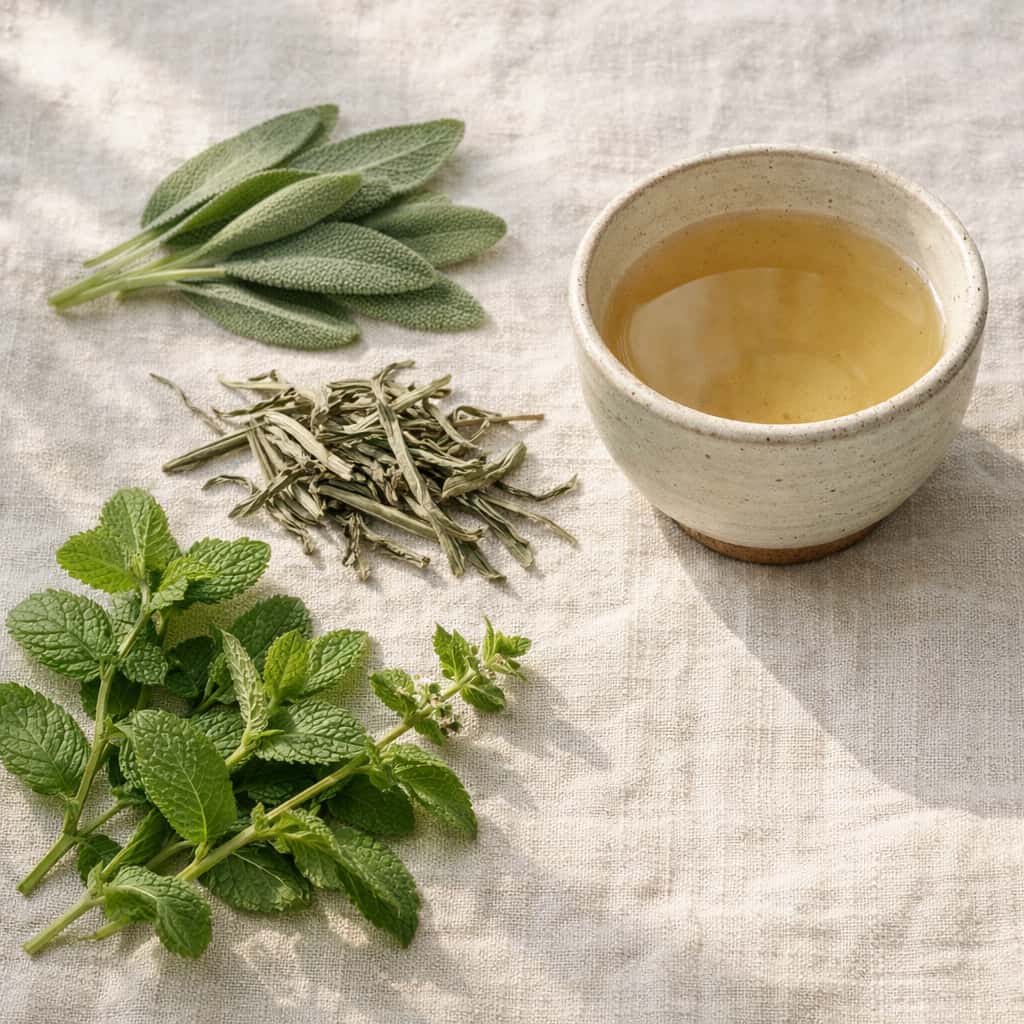 Opens with aromatic sage and soft thyme, gently lifted by crisp mint for a clean, cooling edge. At the heart, white tea brings clarity and lightness, while a smooth oolong base adds a subtle warmth that keeps the scent grounded and composed.